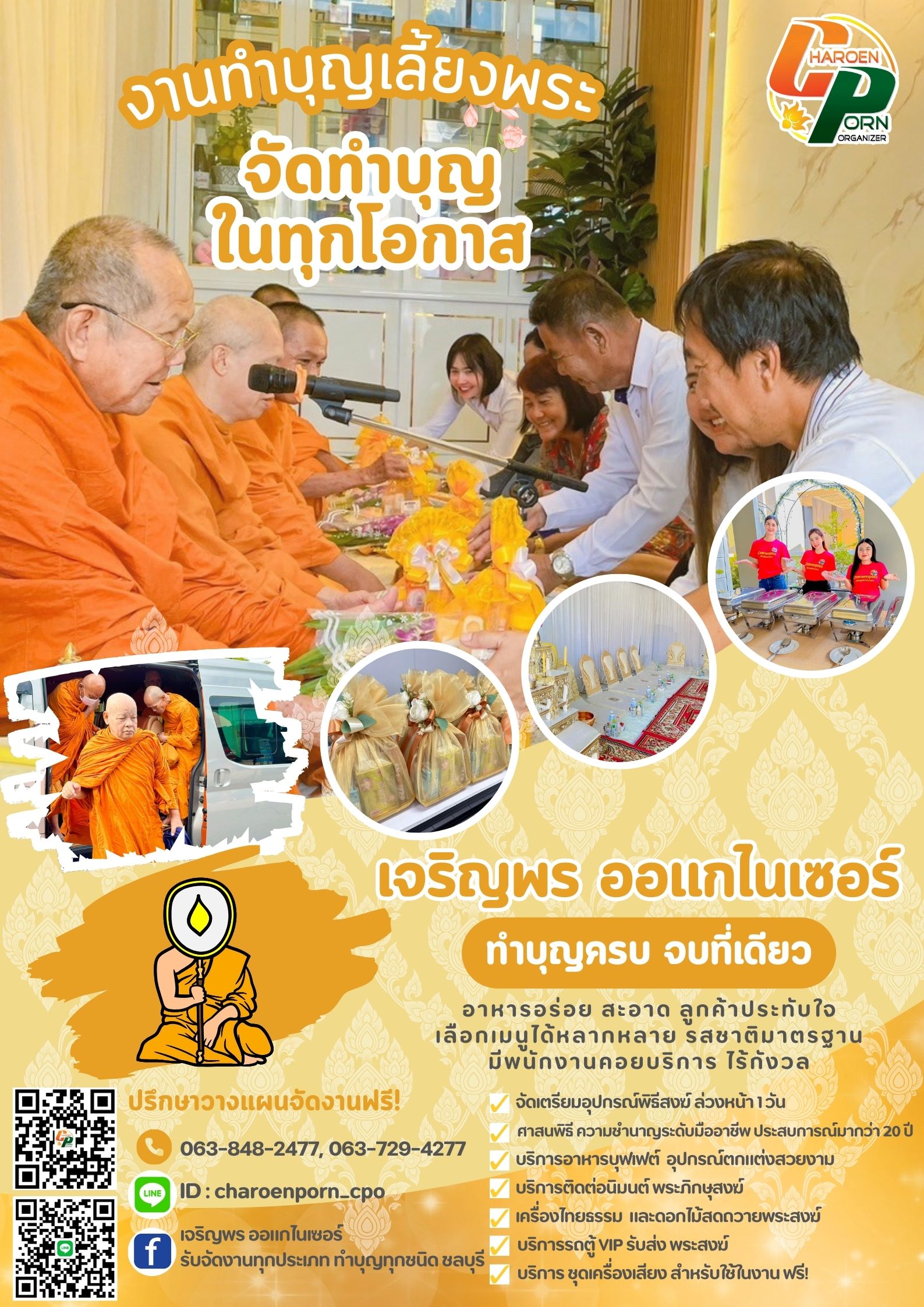 เรามุ่งมั่นที่จะทำให้งานออกมาสมบูรณ์แบบมากที่สุด พร้อมมอบประสบการณ์ที่ดีแก่ลูกค้าทุกท่าน“เจริญพรคือออแกไนเซอร์ จัดงานที่ลูกค้าไว้ใจและเลือกใช้บริการ"